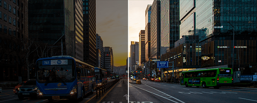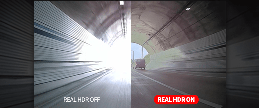 Real HDR reduces image blur at night and provides clear recording in various lighting conditions such as backlight and tunnels.